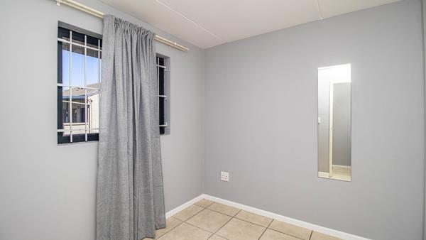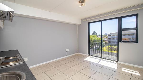 Discover this modern 1-bedroom, 1-bathroom apartment, offering a compact yet functional living space of 33 square metres in the vibrant area of Klipkop, Parow. The interior features a well-designed open-plan lounge and kitchen area, perfect for contemporary living. The kitchen is equipped with sleek white cabinetry, an integrated oven and hob, and a practical tiled backsplash, ensuring a clean and efficient cooking environment. Neutral grey walls and durable tiled flooring extend throughout the apartment, providing a versatile canvas for personal decor. Ample natural light streams in through large windows and a sliding door, which also provides access to a small, private balcony.