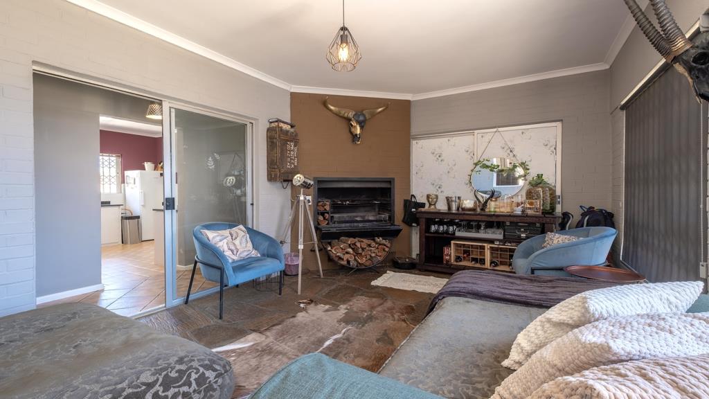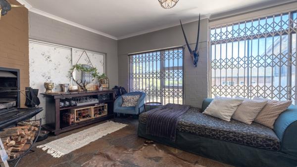The main house boasts a spacious open-plan lounge and dining room, perfect for entertaining, and a private lounge upstairs for relaxation. The fully enclosed indoor braai room is a wonderful feature for alfresco dining and gatherings.
