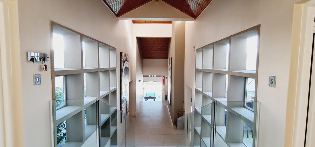 The main dwelling welcomes you with a grand foyer leading to a double garage with direct access. Adjacent to the foyer is a versatile bedroom, ideal for a home office or study, complete with an ensuite bathroom. Down the hallway, you''ll find three more spacious bedrooms, including a master suite with its own ensuite and garden access. A family bathroom and a separate guest toilet enhance the convenience. The living spaces include a lounge with a fireplace, a dining area with ocean views, and an open-plan kitchen equipped with modern appliances and abundant storage. The kitchen seamlessly connects to a large laundry area featuring built-in cupboards and Caesarstone countertops, all with upmarket finishes.