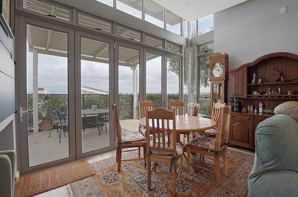 The open plan Gourmet kitchen has top of the range Smeg appliances. The open plan loungedining room has stack doors opening out onto a patio deck to enjoy the views and private garden.