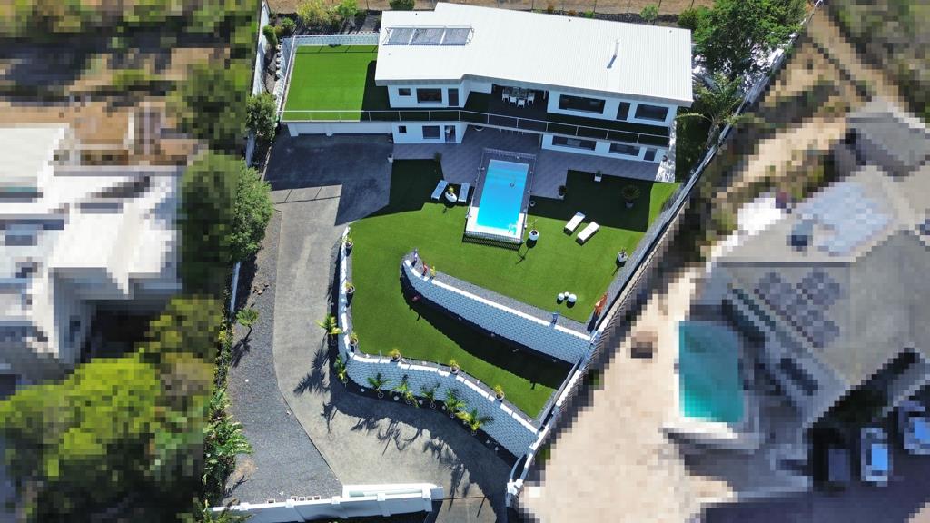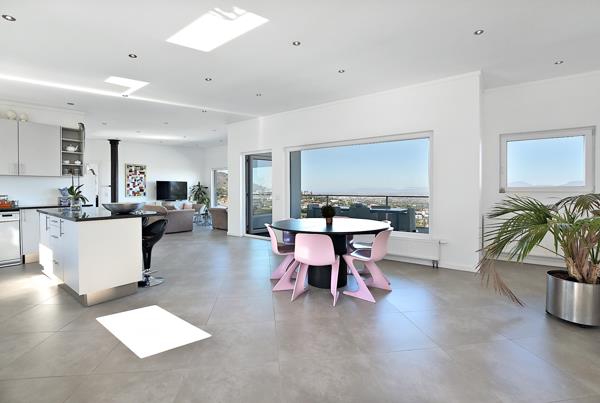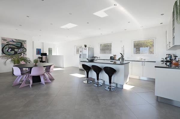 This striking contemporary home is perfectly positioned on a terraced hillside, offering a seamless blend of clean architectural design and natural surroundings. The property features expansive open-plan living spaces, floor-to-ceiling windows, and a spacious upper and lower-level area that opens onto a large wrap around balcony with uninterrupted breathtaking views.