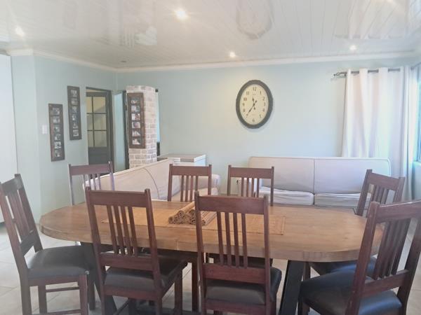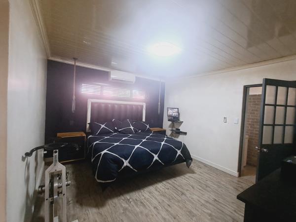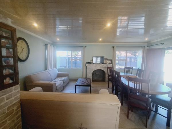 COME AND ENTERTAIN YOUR FAMILY IMMEDIATELY WITHOUT DOING ALTERATIONS. A MUST TO SEE AND MAKE AN OFFER. FULLY ENCLOSED WITH SECURITY CAMERAS AROUND THE PROPERTY, FULLY PAVED AROUND THE PROPERTY, PARKING FOR FOUR CARS BEHIND HIGH GATES. FOUR BEDROOMS TWO WITH BUILT IN CUPBOARDS, MAIN BEDROOM WITH A FULLY TILED EN SUITE, FREE STANDING BATH, HIS AND HERS BASINS, WALK IN CLOSET, ANOTHER BEDROOM IS CONVERTED INTO AN OFFICE AND GYM YOU CAN LET YOUR CREATIVE MIND CONVERT THE ROOMS ACCORDING TO THE FAMILY. HUGE OPEN PLAN LOUNGE AND DINING ROOM LEADING TO A FULLY FITTED MODERN KITCHEN WHERE YOUR GUESTS CAN BE ENTERTAINED, WHILE THE BRAAI IS GOING AND THE BOYS CAN SIT IN THE ENCLOSED BRAAIPIZZA OVEN WITH A BUILT IN BAR. AT THE BACK IS YOUR OUTSIDE BRAAI AND VERY NEAT ENTERTAINMENT OUTSIDE AREA. THIS PROPERTY HAVE ALOT OF EXTRAS TO OFFER, FULLY TILED WOODEN FLOORING AND NEAT THROUGHOUT.