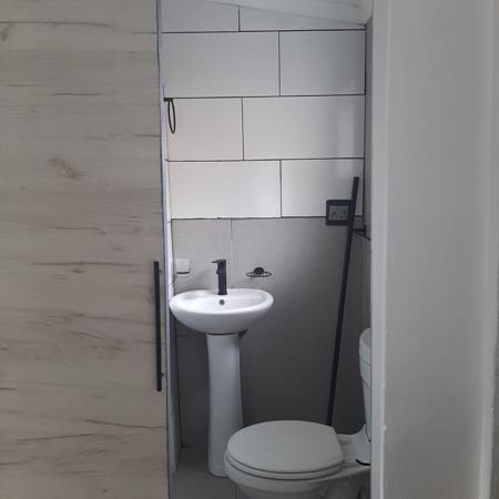 The main house offers 2 comfortable bedrooms and 2 bathrooms. The bathrooms have been modernised with white subway-style and grey tiling, pedestal sinks, and black faucets with one featuring a space-saving sliding door. The bedrooms are ready for personalisation, with clean finishes and ample natural light.