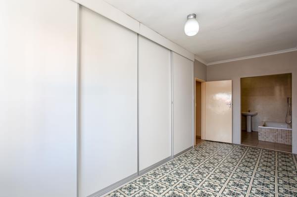 The garden features mature pomegranate and fig trees, adding charm and a sense of tranquility. The property is fully secured with burglar bars and aluminum windows throughout.