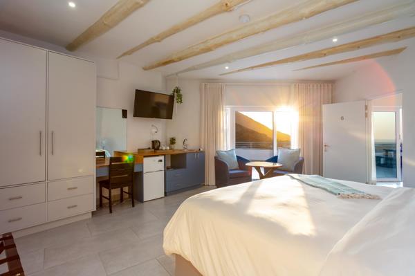 Offering a unique blend of Greek and African fusion, each bedroom creates a private haven featuring its own en-suite bathroom, with three spacious rooms boasting private balconies to soak in the stunning sea views.