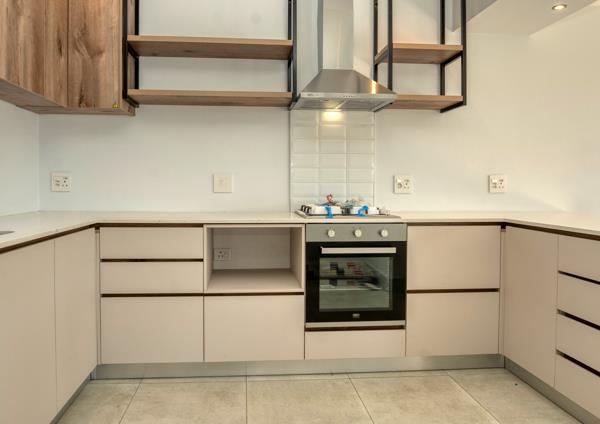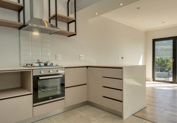 From here, a custom-engineered staircase leads to a vaulted upper level with exposed raftersperfect as a second lounge or study. From here, access three bright and airy bedrooms, the main having pleasant views over False Bay, plus a walk-in closet and en suite with shower, double wash hand basins and loo. The second and third bedrooms, both with built-in cupboards, are supported by a large full family bathroom.
