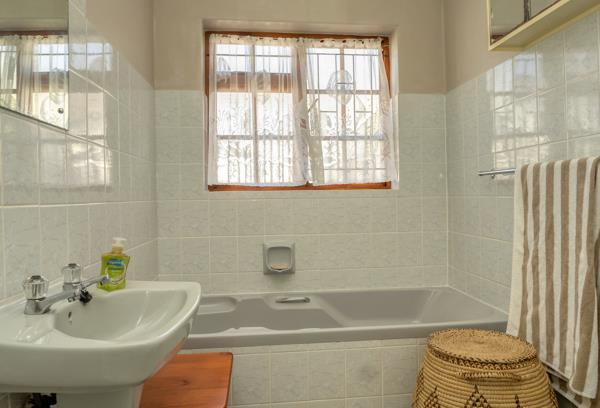 From the lounge are French doors leading to attractive sheltered paved patio area with pleasant north-facing views towards Clovelly Mountain and Trappieskop.