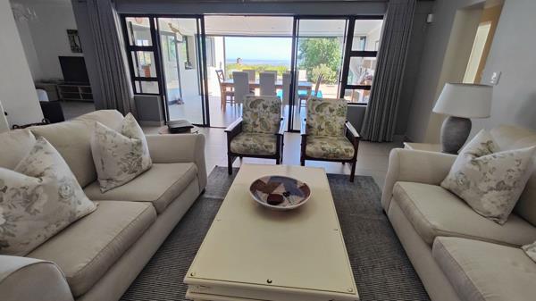 The open-plan lounge features a wood-burning combustion fireplace, creating a warm and inviting atmosphere on cooler evenings, while the adjoining TV lounge provides a separate, comfortable space for family living. A fully fitted kitchen with scullery caters to the home chef, offering ample storage and workspace, and connects easily to the dining and entertainment areas. The enclosed patio is the heart of the home a tranquil spot to enjoy sweeping ocean views all year round.