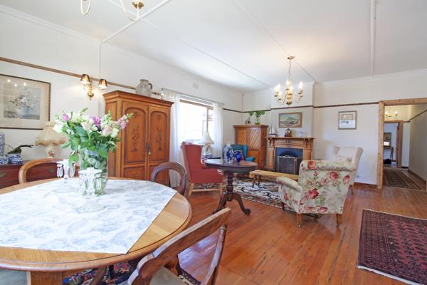 Upon entering, you are greeted by an expansive entrance hall with its teak door that leads into the open living spaces. The lounge, complete with a cozy yellow wood fireplace, provides an ideal setting for relaxation. Adjacent to the lounge is a spacious dining room, both rooms boasting beautifully recrafted mix of Douglas Furr Oregon pine wooden floors and a mix of teak and pine door frames add warmth and elegance to the home.