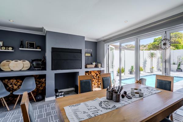 The open-plan living spaces flow effortlessly to the private outdoor area, designed for relaxed entertaining. Here youll find a heated swimming pool, a neat paved patio, and a built-in braai, all set within a low-maintenance and secure garden.