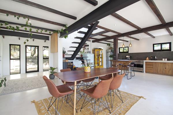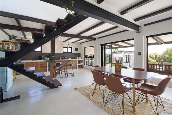 Upstairs, two spacious, light-filled bedrooms await, both en suite and styled with exposed beams, warm textures, and that soft Kommetjie breeze drifting through. Theres also a self-contained one-bedroom cottage with its own kitchenette and bathroom perfect for guests, family, or a savvy rental setup. Add a double automated garage, secure off-street parking, and a generous dose of coastal charm, and youve got the ultimate Kommetjie package: barefoot luxury with a bold, modern twist.