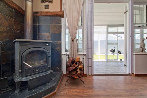A cozy wood-burning stove in the lounge