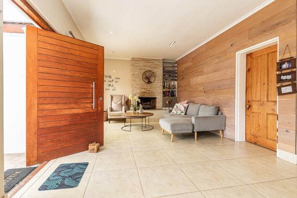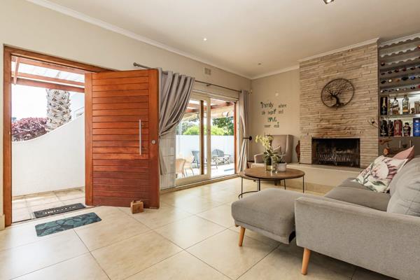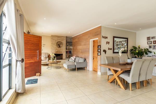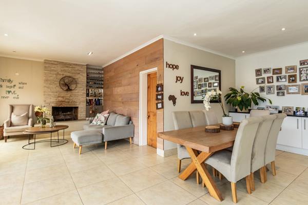 The spacious open-plan layout offers a warm and welcoming flow throughout from the lounge with its cozy fireplace, right through to the covered patio, ideal for entertaining, family braais or lazy weekends by the pool. The family room and dining area lead into a modern kitchen, fitted with a gaselectric oven and plumbing for both a dishwasher and washing machine.
