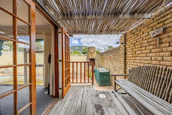 Outdoor living is a highlight, with a private, walled garden and swimming pool that provide the perfect setting to enjoy the Cape lifestyle and surrounding scenery. Large windows throughout the home frame serene garden views while letting in natural light, enhancing the airy feel of the interiors. Parking is exceptionally well catered for, with three garages and five secure off-street parking bays, making the home ideal for families, professionals, or buyers with multiple vehicles.