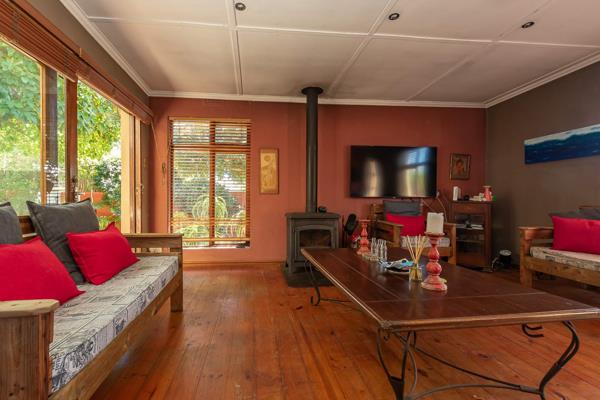 Warm wooden floors and a charming country-style kitchen set the tone, while multiple fireplaces add character and comfort throughout. The spacious lounge, complete with a fireplace, flows effortlessly onto a secluded patio and garden, where a mature avocado tree creates a tranquil outdoor retreat. A separate dining room with its own fireplace opens to the large kitchen, fitted with a gaselectric oven and plenty of space to make it your own.