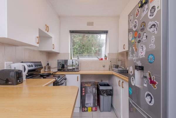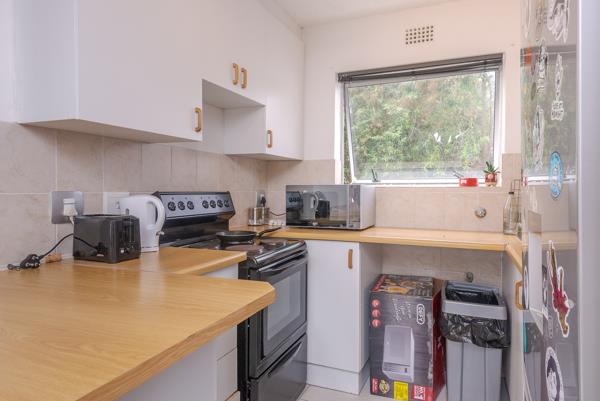 Wow what a fabulous apartment, This is situated on the ground floor with a lovely northern garden and braai area. The apartment consists of a spacious open plan Lounge and Kitchen area with built in cupboards and a stand alone stove. The recently refurbished bathroom has a huge walk in shower with a basin a loo and is very nicely done out.