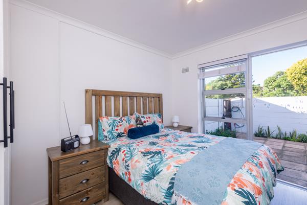 This stunning ground floor apartment has just been renovated to the highest standards, it''s move in ready. The open plan lounge and kitchen area is spacious and light. The kitchen has white ceaserstone work surfaces and an electric hob with an under counter oven. There is plumbing for a washing machine and space for an upright fridge. The bedroom opens out onto the neat garden perfect to sit outside with your morning coffee and with direct access to the communal pool and braai area it has the best of both worlds. There are built in cupboards in the bedroom and the apartment has an en-suite bathroom consisting of a large walk in shower, loo and basin. The entire apartment has laminate flooring tiles in the bathroom and aluminum windows and back door leading onto the garden.