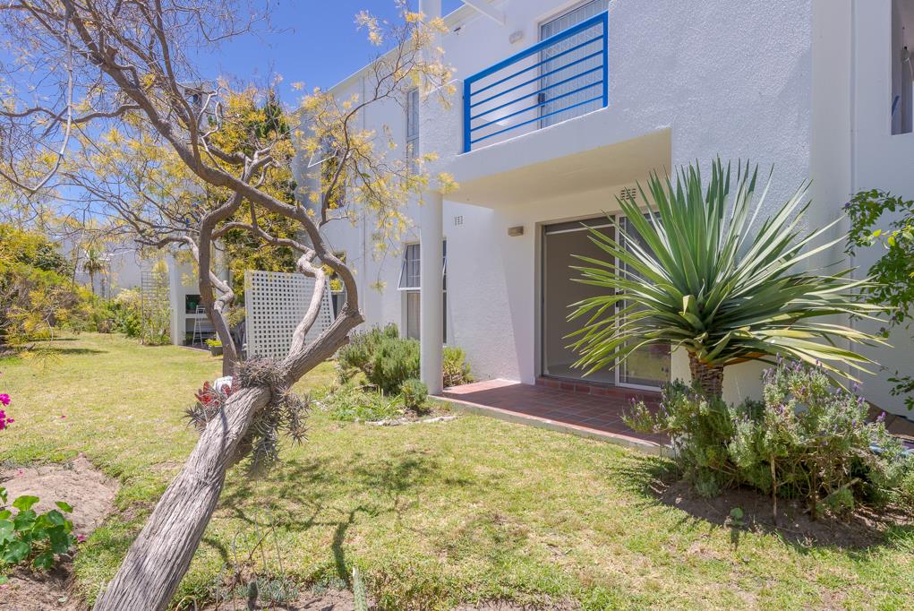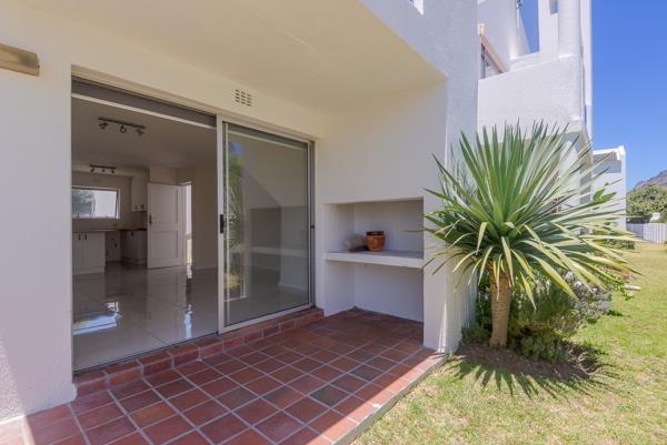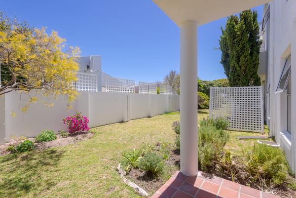 The apartment has been retiled with porcelain floor tiles and newly repainted. There are two light filled bedrooms with built in cupboards. The apartment is on the ground floor with a patio and built in braai perfect for entertaining guests or enjoying a sundowner. It is north facing and has its own little garden which is cared for by the complex gardener.