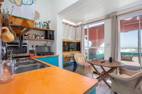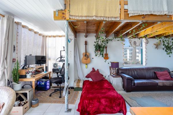 Perched on the top floor with a front-row seat to the ocean , this eclectic beachside apartment delivers the true Muizenberg surf-shack-meets-studio vibe. Flooded with salty breezes and golden morning light, the bachelor-pad layout includes an open plan lounge / kitchen, and a mezzanine loft bedroom creating an effortlessly cool surf-retreat feel.