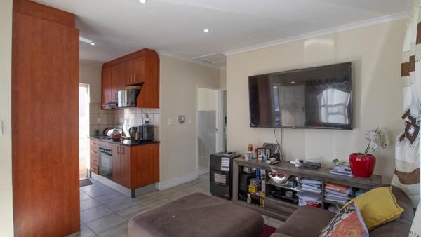 The home itself is situated on a quiet street and features a secure automated door garage, as well as additional parking bays for guests or family members. Inside, you''ll find two spacious bedrooms, each with built-in cabinets, providing ample storage. The bathroom includes a modern shower and an energy-efficient solar geyser. The open-plan kitchen and living area offer plenty of space for comfortable living and entertaining.