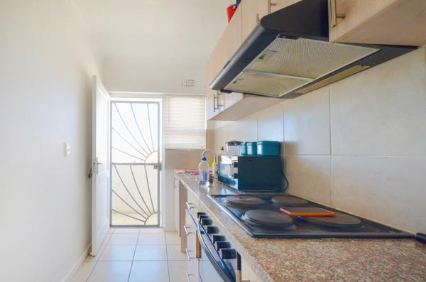 The stunning open-plan kitchen flows through to your lounge. The kitchen is equipped with an electric stove and oven and has a plumbing point for one appliance