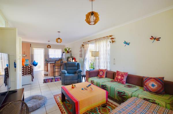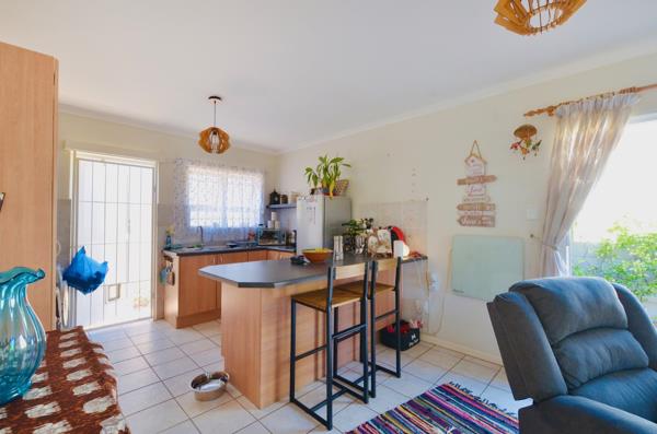 The open-plan living area flows effortlessly into the kitchen, making it ideal for relaxed living and entertaining. Both bedrooms include built-in cupboards, and the full bathroom is neatly finished with a bath and shower.