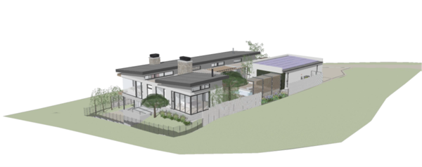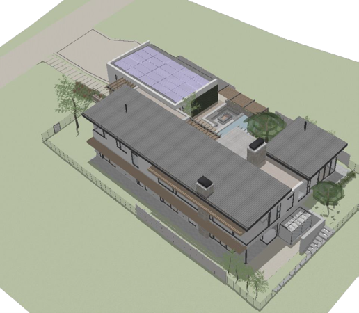 The lower level has been planned to include three additional bedrooms and a dedicated study, opening out onto the garden, ensuring seamless indooroutdoor flow. The design further incorporates an outdoor toilet, firepit, and swimming pool, creating a relaxed yet sophisticated lifestyle environment.