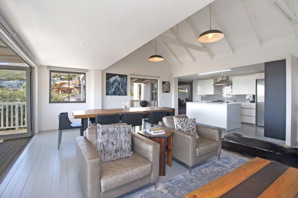 Stacking doors extend the living space onto a large elevated deck with sea and mountain outlooks, perfect for sundowners, alfresco dining and long summer evenings. An additional en suite room on this level offers excellent flexibility, well suited as a guest suite, work-from-home space or fourth bedroom.