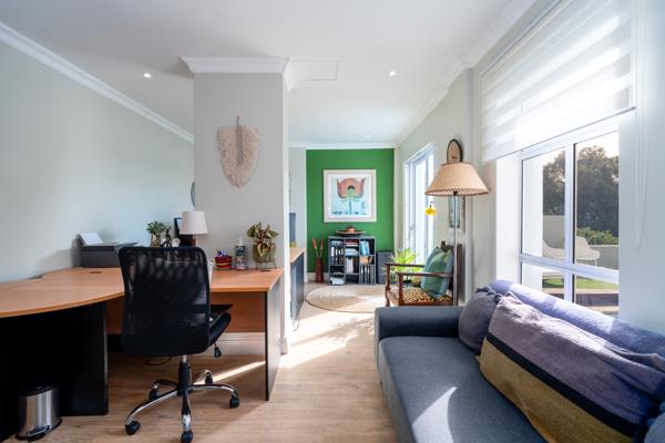 A separate entrance to a self-contained flatlet with a balcony and the other to the main house with officeseating area.