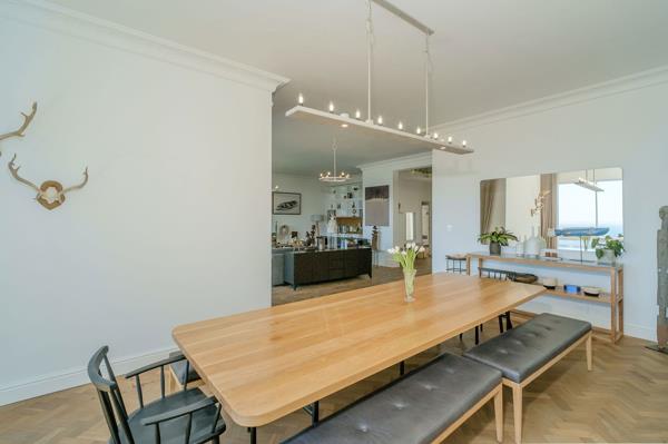Elegant open plan lounge and dining room with large picture windows and exceptional views