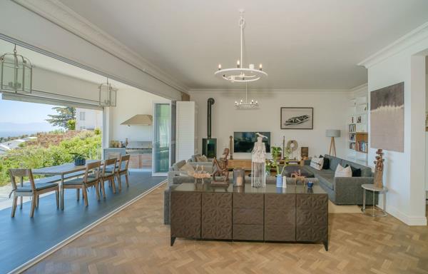 Elegant open plan lounge and dining room with large picture windows and exceptional views