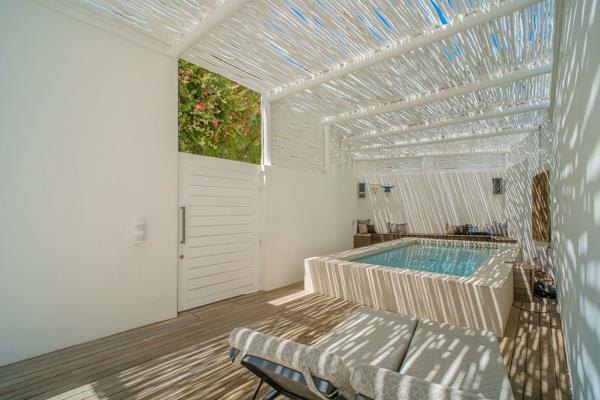 MODERN COASTAL SANCTUARY. Elevated above the village on one of Simons Towns most desirable streets, this ultra-modern home blends clean architectural lines with soft natural light and sweeping views of the Yacht Basin, False Bay and the surrounding mountains. Beautifully considered spaces, high-quality finishes and flexible living areas make it a refined retreat for modern coastal living in a wind protected area.