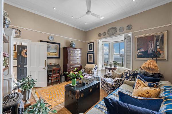 The cozy sun-drenched lounge, complete with an original fireplace, offers breathtaking bay views. The master bedroom boasts a full en suite bathroom, while a separate one-bedroom flat, with its own entrance and en-suite, opens onto a quaint courtyard and braai area. The spacious dining room , well-appointed kitchen, laundry and pantry area, and secure tandem parking complete this idyllic retreat.