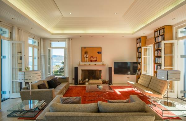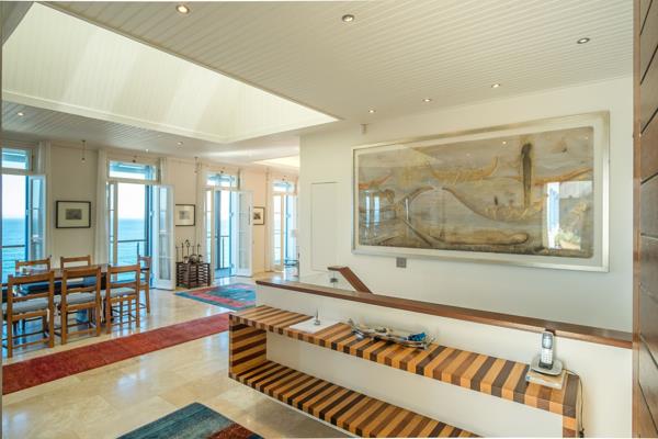 Downstairs has a study area, wine cellar, a very spacious main bedroom which has a dressing room and en-suite bathroom with a gorgeous copper bathtub. There are a further 3 generous guest bedrooms one of which has an en- suite bathroom with the other 2 sharing a family bathroom. All of the bedrooms open onto a deck overlooking the sea.