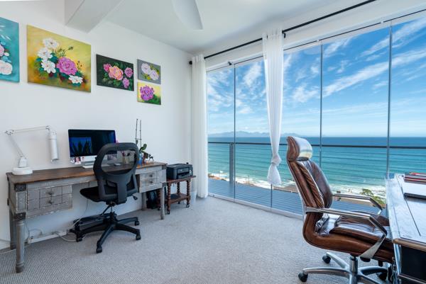 An elegant entrance hall leads into light-filled open-plan living spaces where the lounge, dining area, and fully equipped kitchen flow seamlessly onto a panoramic balcony perfect for sunrise coffees and sunset entertaining. A separate scullery enhances practicality without compromising style.