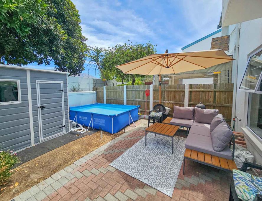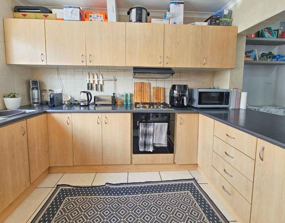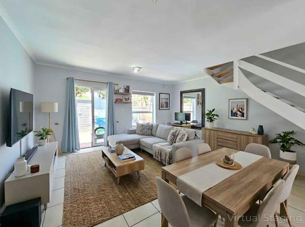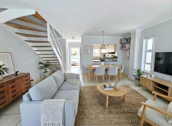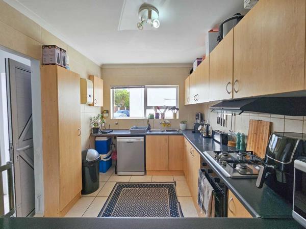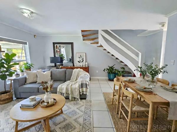 Upstairs there are 3 sizable bedrooms, family bathroom and spacious hallway cupboard. Main bedroom has plenty of cupboards, ensuite bathroom, balcony with awning and fantastic mountain and vlei views spot the cows from nearby Dreyersdal Farm.