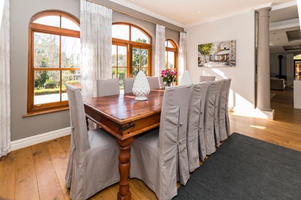 Set on over 5000 sqm with elegance and charm, this family home has all you need and more. Grand double volume entrance hall opens to formal living room with fireplace. Easy flow to formal dining room and immaculate open-plan eat-in-kitchen, TV room with doors opening onto patio and garden with uninterrupted mountain views. Upstairs you''ll find 5 large, North facing bedrooms including master suite and a study nook.