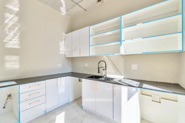 The estates architectural language embraces sleek minimalism: clean lines, elongated glass windows, and beautifully landscaped outdoor areas create a refined and cohesive aesthetic. Paved driveways and manicured gardens set a welcoming tone, while high ceilings, porcelain flooring, and open-plan living spaces inside maximise natural light and volume. White aluminium sliding doors, American security shutters, and a timber staircase with glass balustrades further elevate the contemporary feel. Each bedroom is en-suite with walk-in showers, and every unit enjoys its own private courtyard or garden with a pool. A shared borehole services the estate, ensuring ongoing sustainability and convenience.