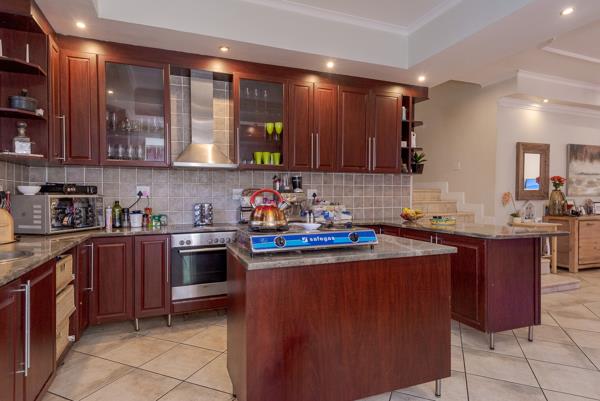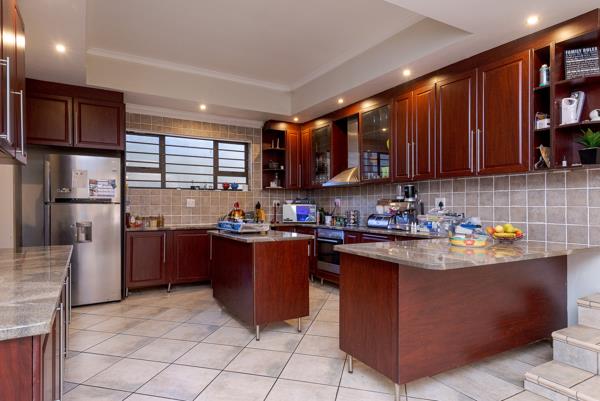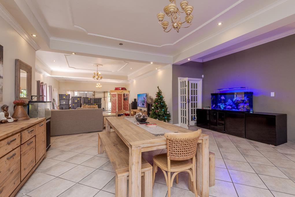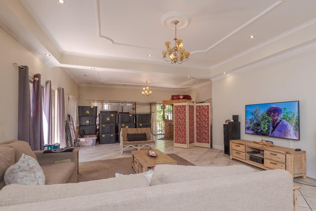 Outside, the garden provides ample room for landscaping and outdoor living opportunities, with a pool currently not in working condition that can be restored into a sparkling entertainment feature. Staff accommodation adds practical value, while two garages and additional parking enhance everyday convenience. The property is secured by an electric fence.