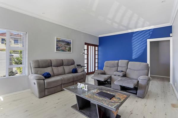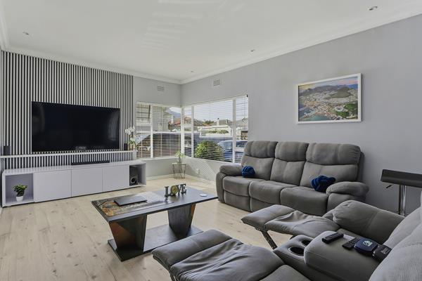 The home features four bedrooms, three bathrooms, and three secure parking bays. The sunny mountain facing lounge with large corner windows flows seamlessly into a separate dining room. Laminate flooring throughout. A convenient serving counter connects to the well-appointed kitchen, which includes a scullery/laundry area. A generously sized enclosed entertainment room offers countless options or could be used as a studio of sorts. Double doors lead outside to a flatlet/4th bedroom with a bathroom with a shower that can also easily function as a dedicated work-from-home space.