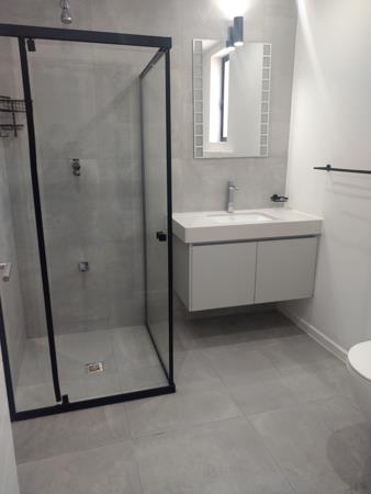 Bathroom: Features a vanity cupboard and ISTIMJA spray