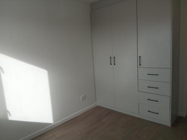 Lovely spacious Bedroom with laninated flooring and built in cupborads