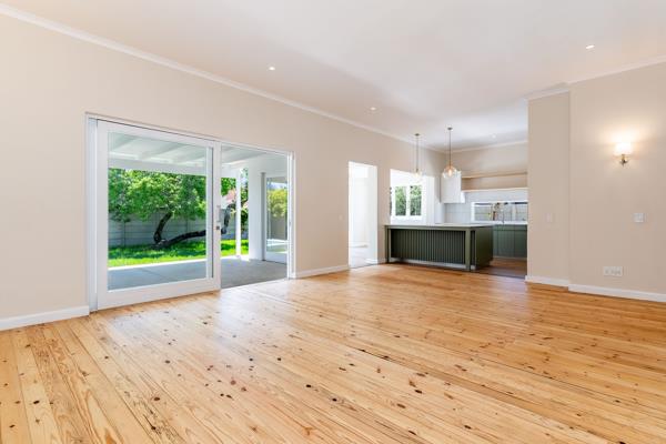 SOLE MANDATE | Well-presented, single level family home in Claremont. On entrance this home offers generous open plan living leading to a modern kitchen with an eat-in breakfast counter and plumbing for two additional appliances. The living area opens onto a covered verandah with built-in braai, creating a seamless indoor-outdoor flow. The established garden with pool features lavender beds at the entrance, a fast-growing indigenous evergreen white pear tree, and is framed by mountain views.