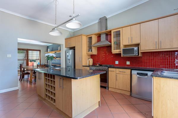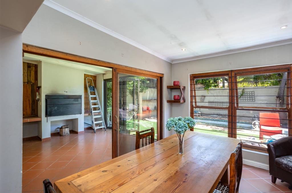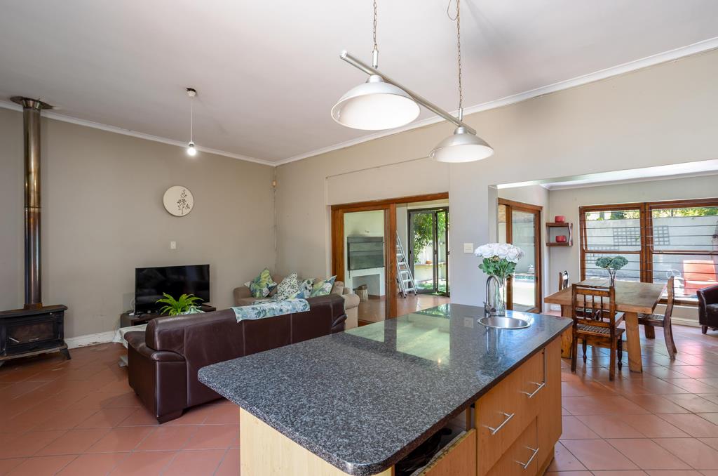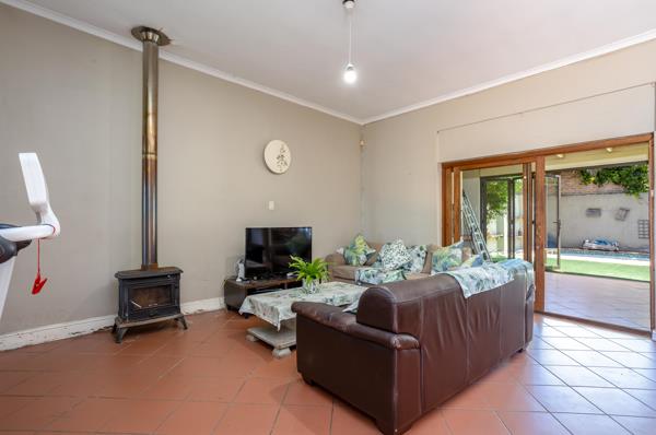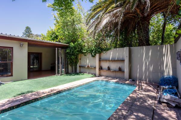 High ceilings enhance the sense of space throughout, particularly in the open-plan living area, which flows via a patiobraai room and stacking doors to a private, enclosed garden under easy grass for easy maintenance and a manageable sized pool.