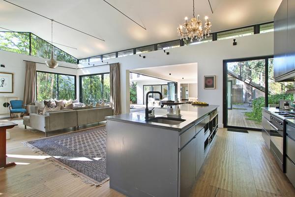 Outdoor and indoor flow where the home was designed to incorporate nature as much as possible and that the established trees and landscaping are as integral as the house itself.