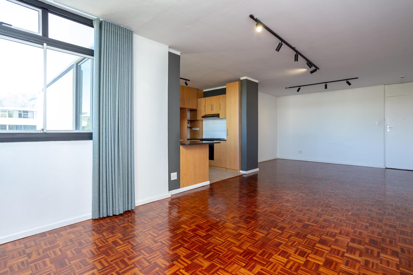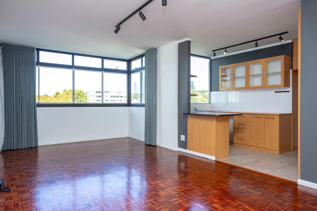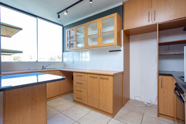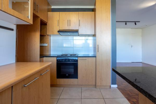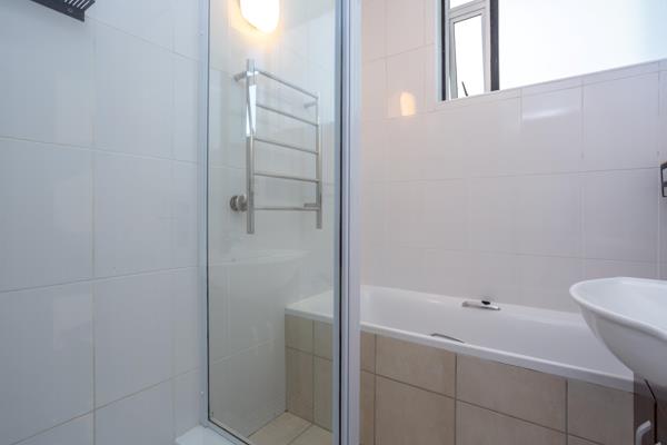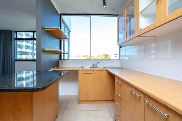 The apartment features an open plan lounge, dining area and kitchen with windows on all the sides allowing for ample natural light in every room. The kitchen offers plenty cabinets, equipped with a built-in oven, stove and hob and is plumed for two appliances. The bedrooms are both spacious and fitted with built in cupboards. The bathroom has been fitted with a separate bath and shower with separate guest loo.