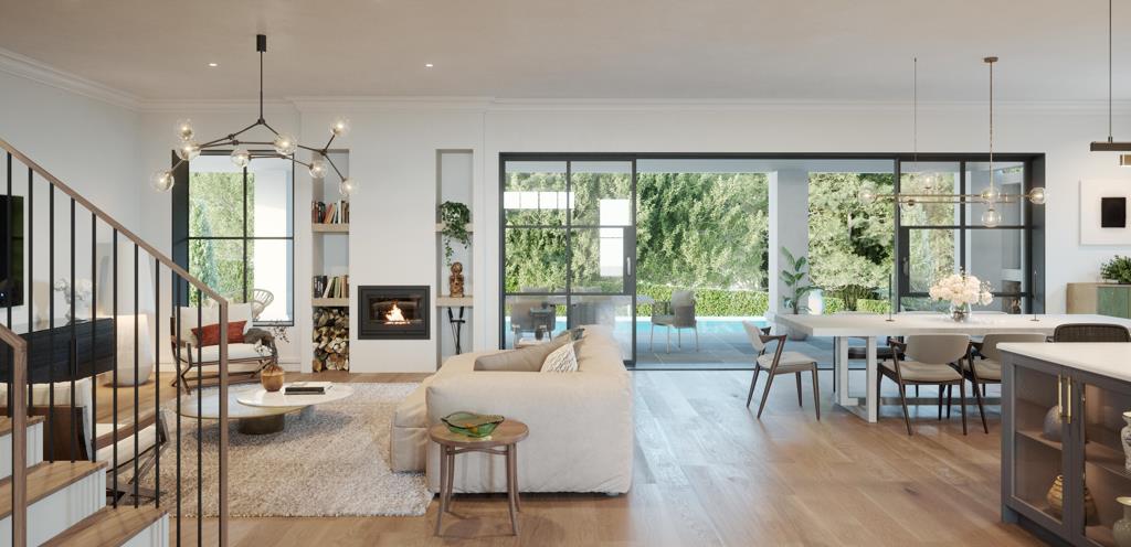 Each residence within the estate showcases exemplary architectural design, characterised by premium finishes and generously proportioned rooms. Privacy, breathtaking vistas, and an abundance of natural light have been thoughtfully integrated into the design. The open-plan living areas effortlessly bridge the indoors and outdoors, setting the stage for seamless, elegant entertaining. The accommodation unfolds with four bedrooms, three en-suites, and a fourth bathroom, heightening the ambiance of sophisticated luxury.
