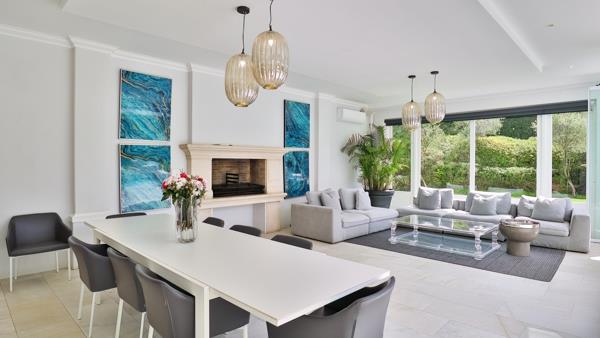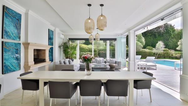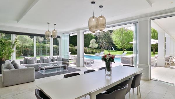 On the lower level, a children''s playroom awaits, along with a separate two-level guest wing, featuring its own living area, kitchen & two bedrooms. Ascend the main staircase to discover a pajama lounge, two sunny bedrooms, a family bathroom & a third en-suite guest bedroom. The primary bedroom boasts a bespoke en-suite bathroom, his & hers dressing rooms and a balcony offering a glimpse of Constantia''s charm.