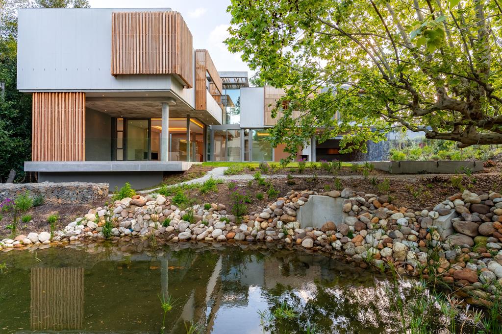 SOLE MANDATE | Luxury four-bedroom home in Botanica Constantia - an exclusive boutique estate in the heart of the Constantia Valley. Ash is positioned in a quiet, private corner of the estate, surrounded by established trees. The home features an open-plan kitchen, dining, and lounge area that flows seamlessly onto an elevated patio, creating the perfect indooroutdoor connection. The ground-floor living spaces open onto a compact lawn that terraces down to the garden, pool, and natural pond.