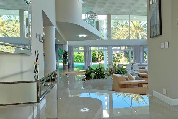 Discover one of Constantias most extraordinary homes a statement in sophisticated modern design and light-filled luxury. This architecturally unique residence features an unusual glass-ceiling design that floods the expansive open-plan living areas with natural light, creating a seamless flow between indoors and the surrounding landscaped gardens and views.